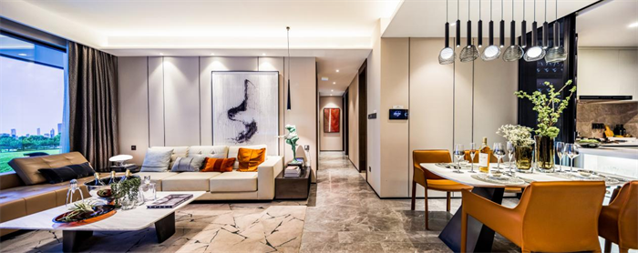 每天陪伴生活的家庭空间更是如此。午后充满阳光的房间,喵星人窝在沙发里,音箱播放着温柔的春日组曲,在看得见风景的大阳台,足不出户感受晴雨或者风起——在(建筑面积约)165㎡户型设计上,约14.5米南向四面宽、约7.8米观景阳台的奢+尺度,给阳光的进入留有更大空间,当鸟儿轻盈飞过,家的可移动风景更加令人心动。