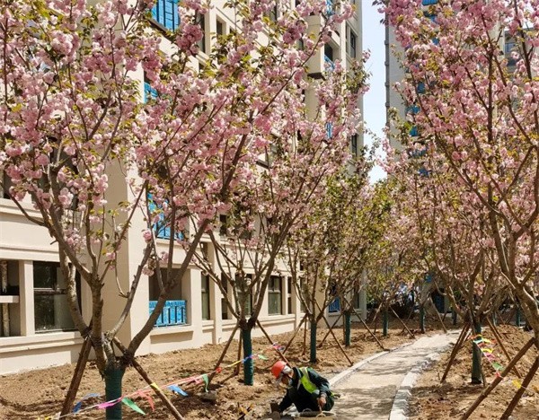 即墨•青特城目前已开始装饰装修阶段,景观大乔木种植完成,地被灌木施工阶段正如火如荼地开展。