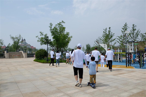 烟台海阳市广大市民积极参与,有的全家出动、有的情侣携手、有的闺蜜组团、有的兄弟共进,大家步伐矫健,欣赏着鲁能胜地德式风情建筑群、无动力儿童乐园、花海、水系园林等盎然景致,展开了一场不同寻常的健康之旅。