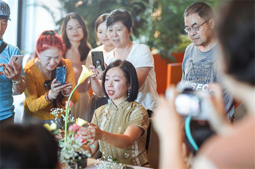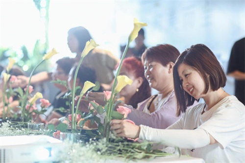 签约仪式后,首次女性提升课程“遇见小原流花道”也如约落地。小原流传承自东方花道,强调先认识自然再表现自然,重点在于植入个人色彩与情感去表现自然的意境,将其融入家居生活日常。刘洋老师带领朵民们了解花道基础知识、亲自动手修剪花枝,制作一盆灿烂夏色。