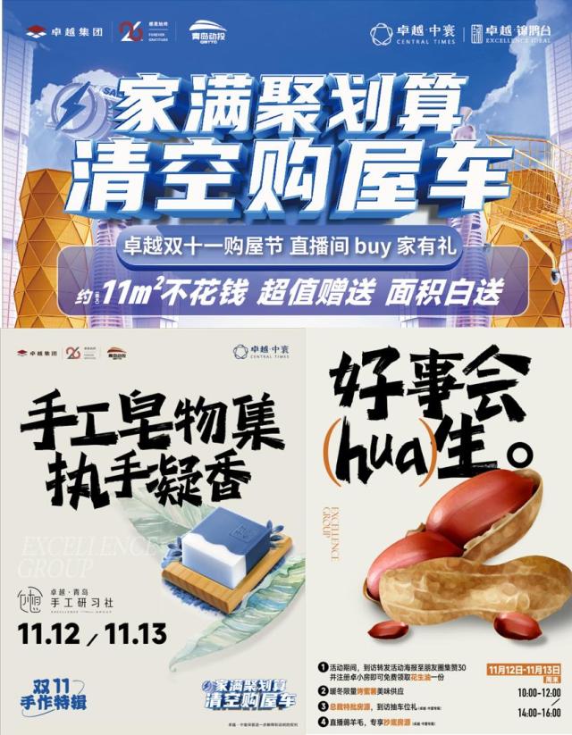 正值钜惠双十一,卓越·中寰推出实在六重礼,惊喜福利助力安家!总裁专属特价房最高直省29万,到访即抽车位礼,一步到位实现住房自由;经纪人专属福利,赚积分有机会抽取金条、大牌家电;直播间专属优惠,抄底房源全民爆抢,重磅壕礼实力宠粉;参与卓小房互动游戏,瓜分万元购屋车奖金;到访转发集赞即可领取花生油一份,更有烤蜜薯美味供应,让这个初冬,彻底燃起来!相约中寰:0532-80932999。