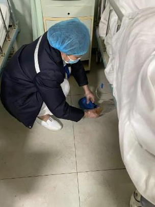 今年66岁的老人刘大爷常年在养老院内生活,因患有心脏病在内二科治疗,患者住院期间一直没有家属陪护,科室医护人员主动承担起照料刘大爷的衣食起居。为了方便照顾老人,护士长特意将老人安排在离护士站较近的房间。老人既往有脑梗死病史,遗留右侧肢体活动不灵,大小便只能在床上解决。老人住院前有多处压疮,伤口已破溃。责任护士每日坚持为病人消毒,认真观察伤口愈合情况,虽然科室病患多、工作量大,加上新冠疫情防控工作繁忙,但医护人员还是义无反顾的照顾起老人喂饭、喂水,翻身拍背、清理大小便的生活照顾。