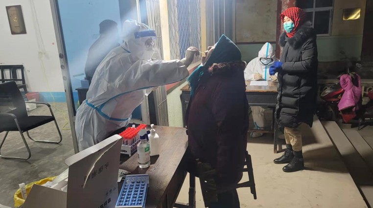 李淑梅是店埠镇的一名乡村一体化医生,从疫情开始,她就投入到疫情防控工作中,主要负责后张管寨自然村核酸检测点全员核酸检测采样工作,工作任务也是十分繁重。3月5日凌晨接到核酸检测任务后,她第一时间奔赴后张管寨检测点投入到核酸检测工作中,连续奋战8个小时,完成1068人的核酸采样工作。“尽管家里还有上学的孩子需要照顾,但我们是党员,在组织和群众需要时就应该站出来,放下‘小家’,与大家一起到抗疫一线并肩作战。”李淑梅坚定地说。