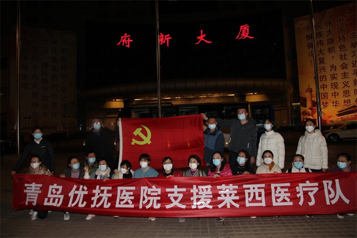 3月15日晚8时,全市赴莱西医疗队出征仪式在青岛府新大厦举行,青岛优抚医院代表市退役军人局派出20名医护人员组成支援莱西医疗队,启程奔赴莱西执行疫情防控紧急任务。