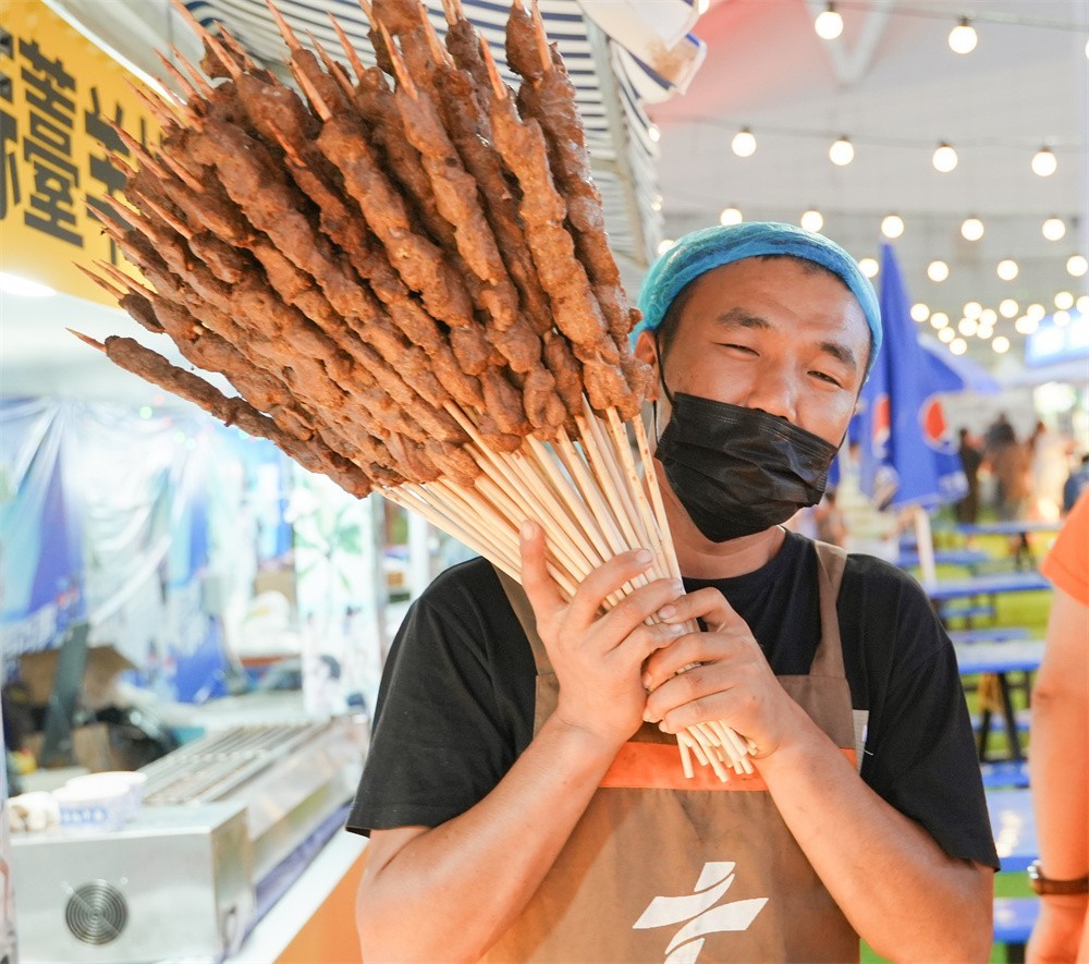 长沙臭豆腐、天津包子、陕西大凉皮……在凤凰夜市,装饰风格各不相同的众多摊位,经营的美食也不尽相同。“我们是地地道道的湖南人,湖南最有特色的就是臭豆腐。每年我们都会来啤酒城,让天南海北的人们都能品尝到我们家乡的美食。”臭豆腐摊主王先生告诉记者。