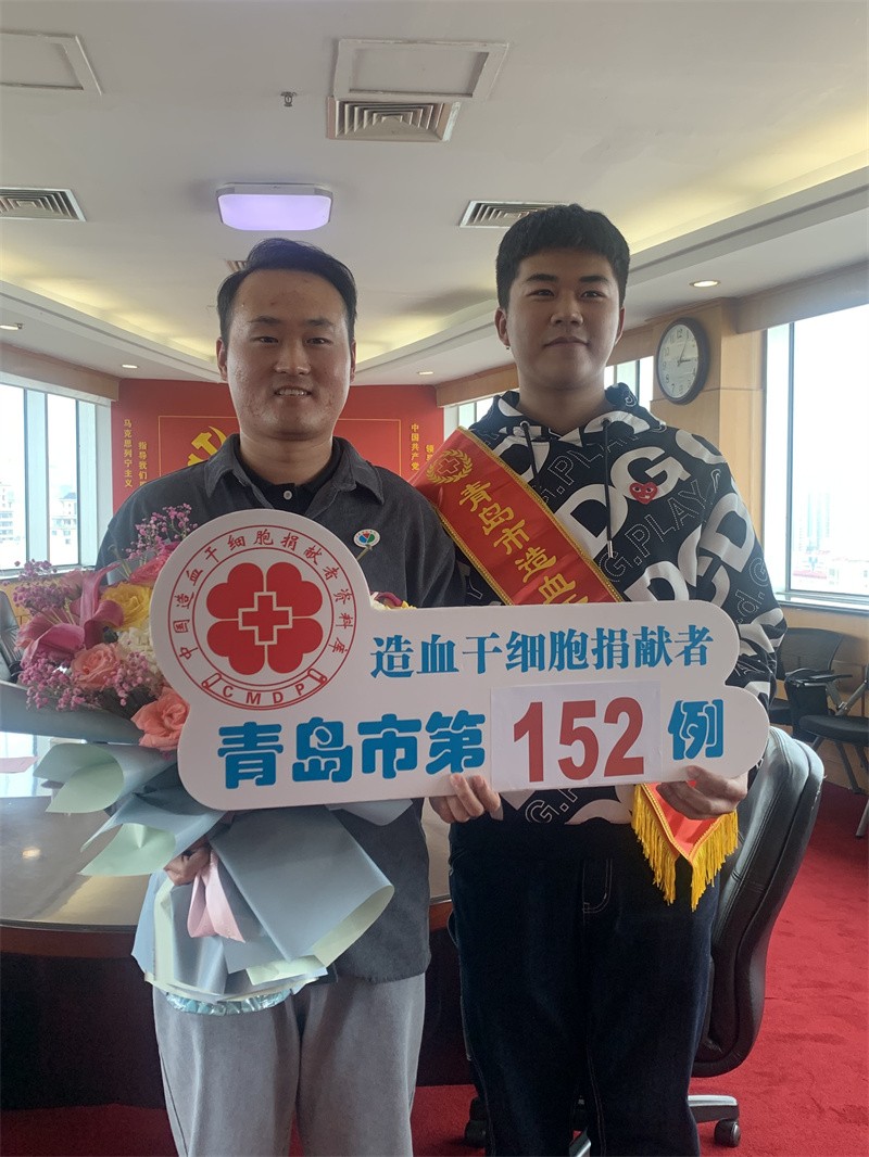 10月8日,青岛市西海岸新区红十字会举行仪式,欢送造血干细胞捐献志愿者、青岛滨海学院郭天雨同学赴青岛大学附属医院捐献造血干细胞,挽救血液病患者的生命。他将成为青岛市第152例、新区第28例非血缘关系造血干细胞捐献者,也是新区年内第4例捐献者。