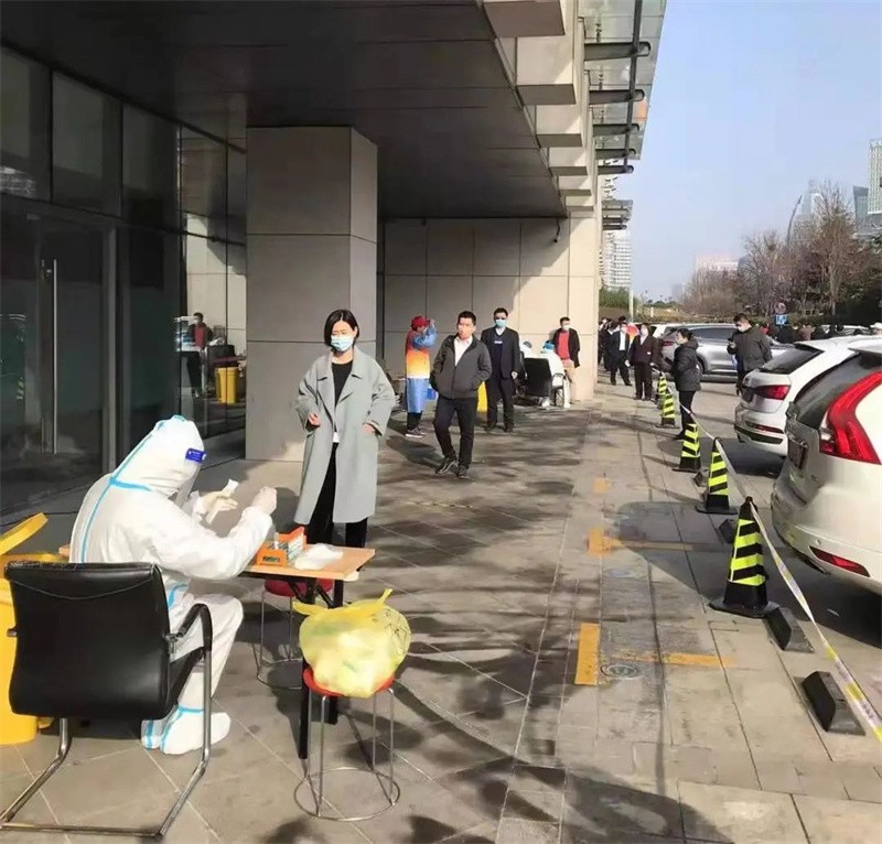 疫情当前,为切实解决楼宇企业员工核酸检测的难题,进一步扩大核酸检测覆盖面,金家岭街道在辖区商务楼宇中开设10个临时核酸检测点,方便开展重点商务楼宇从业人员核酸检测工作。“我们在前期走访中发现,部分楼宇员工人数多,存在核酸检测难的情况,于是我们把核酸检测点设在楼宇中,44轮核酸检测累计为楼宇企业职工检测40万多人次。”陈文敏介绍。