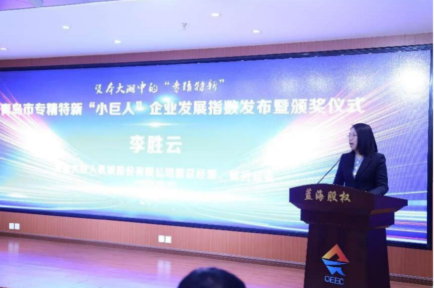 12月20日,由青岛市民营经济(中小企业)发展领导小组办公室、青岛市民营经济发展局、青岛市金融监督管理局、青岛市工商业联合会等单位联合主办,青岛蓝海股权交易中心承办的“资本大潮中的“专精特新”——青岛市专精特新“小巨人”企业发展指数发布暨颁奖仪式”成功举办。青岛市民营经济发展局党组成员、副局长李杰,国家税务总局青岛市税务局党委委员、副局长沈宏,青岛市工业和信息化局总经济师岳兴良,青岛蓝海股权交易中心总经理常欣等出席活动。