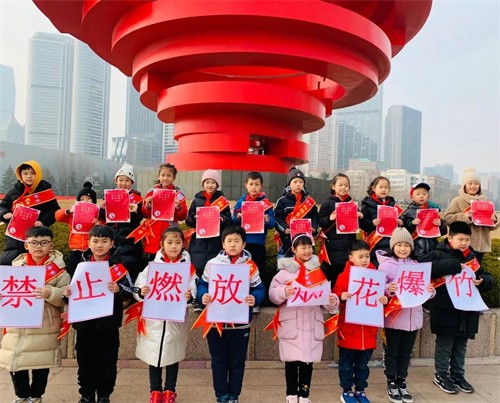 “爆竹声中一岁除,春风送暖入屠苏”,作为传统习俗,燃放烟花爆竹是一种表达喜庆、欢快心情的形式。但是在城市中,人口相对密集,高空烟花等的燃放极易引发火灾,极易引起伤人事故,直接危害生命财产安全。二(3)中队的队员们设计了禁放烟花爆竹的传单,相约五四广场,为来往的游客做环保宣传,发放自己设计制作的“禁止燃放烟花爆竹”主题的宣传单、口号标语,讲解燃放烟花爆竹的危险与危害,倡议新时代新仪式迎新春的方式。以这种文字活泼、内容引人入胜的形式,向百余路人积极热情地进行关于“禁止燃放烟花爆竹”的提醒、宣传和倡议,希望通过丰富多彩的宣传活动,让安全意识深入人心,使每个人都能为文明城市贡献一份力量。