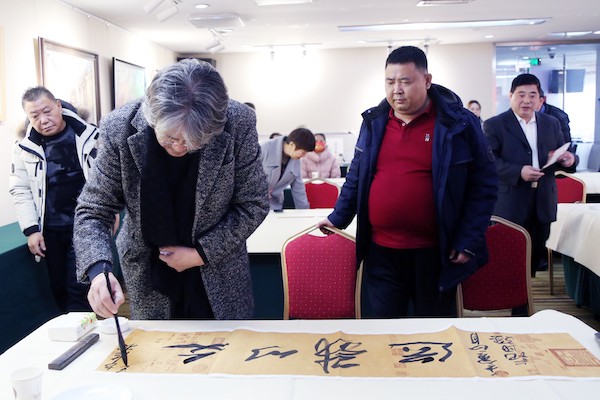 揭牌仪式开始前,举行了齐鲁书画名家邀请笔会。青岛书协主席范国强先生为今天的笔会开笔,青岛书协副主席郭强、著名画家刘朝波等书画名家先后挥毫泼墨,为大家奉献了一场书画盛宴。