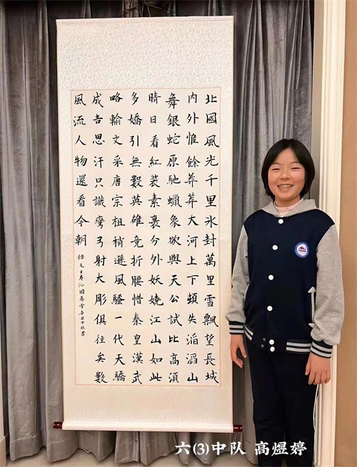 松涛阵阵,岁岁缅怀,念念衷情。六年级的队员们用书法誊写赞颂英雄的诗歌作品,一幅幅创作书法作品承载着队员们的追念,凝聚着民族精神。一首首赞歌,说不完我们对英雄的崇敬和思念。