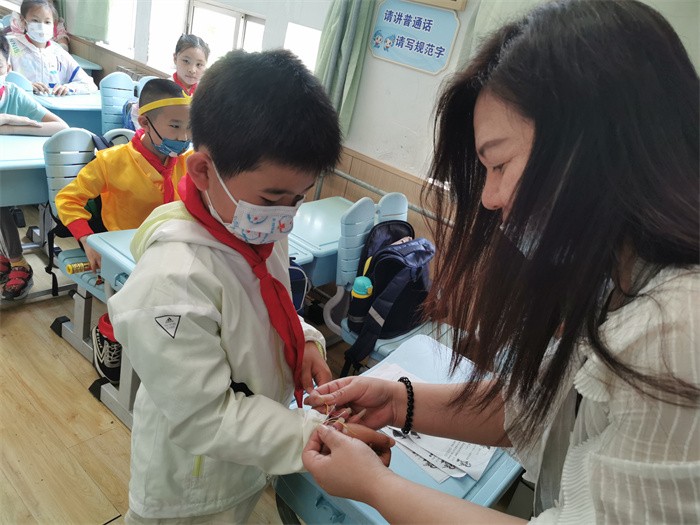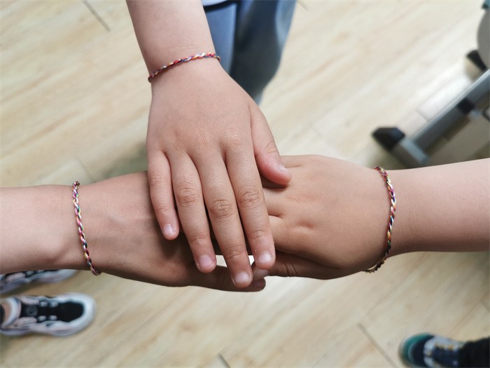 五色丝线,又俗称五色丝、五彩丝。有祈福纳吉的美好寓意。为了让美好的祝福得以传递,学校为队员们准备了五彩绳结,寓意着祈福纳吉,这也是一种美好的期许。端午节前夕正是六一儿童节,迎着清晨的朝阳,“慧创城”市长朱校长带领老师们为队员们赠送五色绳,把美好的祝福化作根根丝线,祝福孩子们平安健康,茁壮成长。