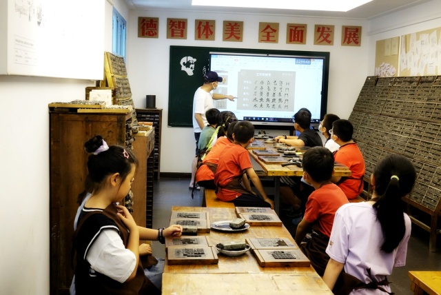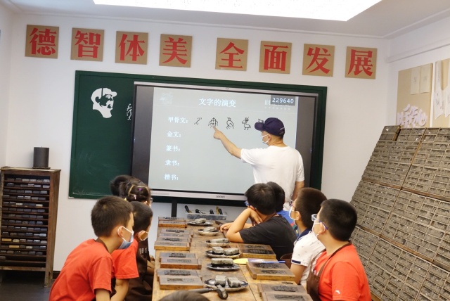 三(4)中队走进市南区爱国主义教育基地——时光印记印刷博物馆,寻访博物馆馆长阮同民叔叔。在阮叔叔的讲解和带领下,队员们参与活字印刷、凸版印刷、雕版印刷、丝网印刷等中国传统及现代的印刷工艺开发成生动有趣的体验课堂,让停留在课本上的非物质文化遗产“活”起来,队员们用稚嫩的双手在漫漫的历史长河中找寻印刷的影迹,与阮叔叔一同深入探寻汉字之美,感受中国传统文化的魅力。