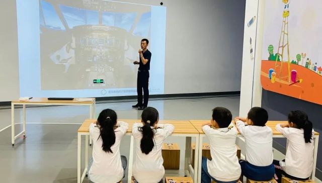 换上机长服,戴上小领带,配上金色肩章,二(8)中队的小队员们在青岛金融航空素质教育基地体验了模拟波音737-800型号飞机,过了一把“中国机长”瘾。驾驶舱模型按照1:1比例还原,270度球幕成像,借助三通道融合技术,使体验感受与真实飞行无限接近。校外志愿辅导员带领队员们学习飞机的结构、基本操作方式和仪表盘的认识。队员们全方位地体验了飞机的驾驶乐趣,还亲手制作了飞机模型。通过此次寻访,队员们将牢记中国机长的使命——“Professional专业、Knowledge知识、Flying skill技术、Responsibility责任”,从小树立搏击长空,为国争光的远大理想,在追梦的道路上毅力笃行。
