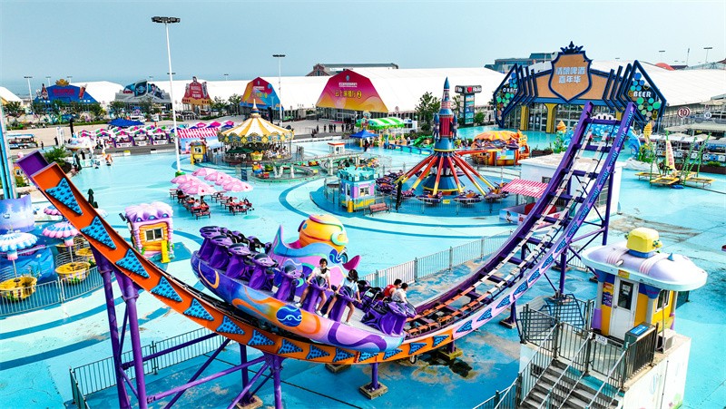 7月23日,记者从青岛西海岸金沙滩啤酒城北一门入场,直行约200米,便看到了这座“啤酒城梦幻岛”。此时,梦幻岛过山车载着游客在半空蜿蜒而行、哈雷机车上的小朋友正玩得不亦乐乎……这是一座激情四溢、亲子畅玩的梦幻乐园,更是一片欢乐的海洋。