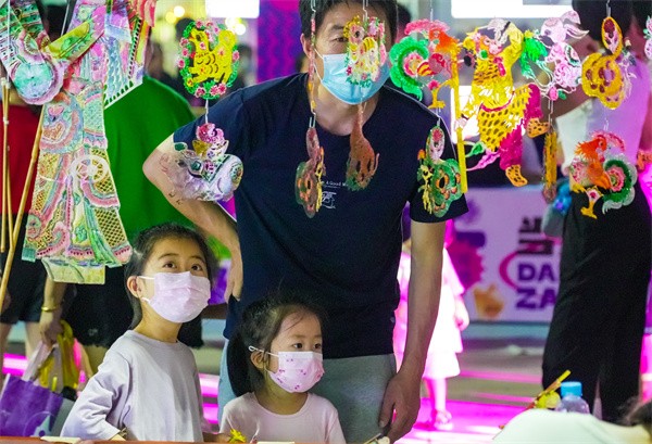 游客王娜对刚在市集上买的艾草香囊爱不释手。“市集上有好多有趣的小东西,皮影、麦草画、沙包......一下子让人回到童年的感觉。”王娜兴奋地对记者说。