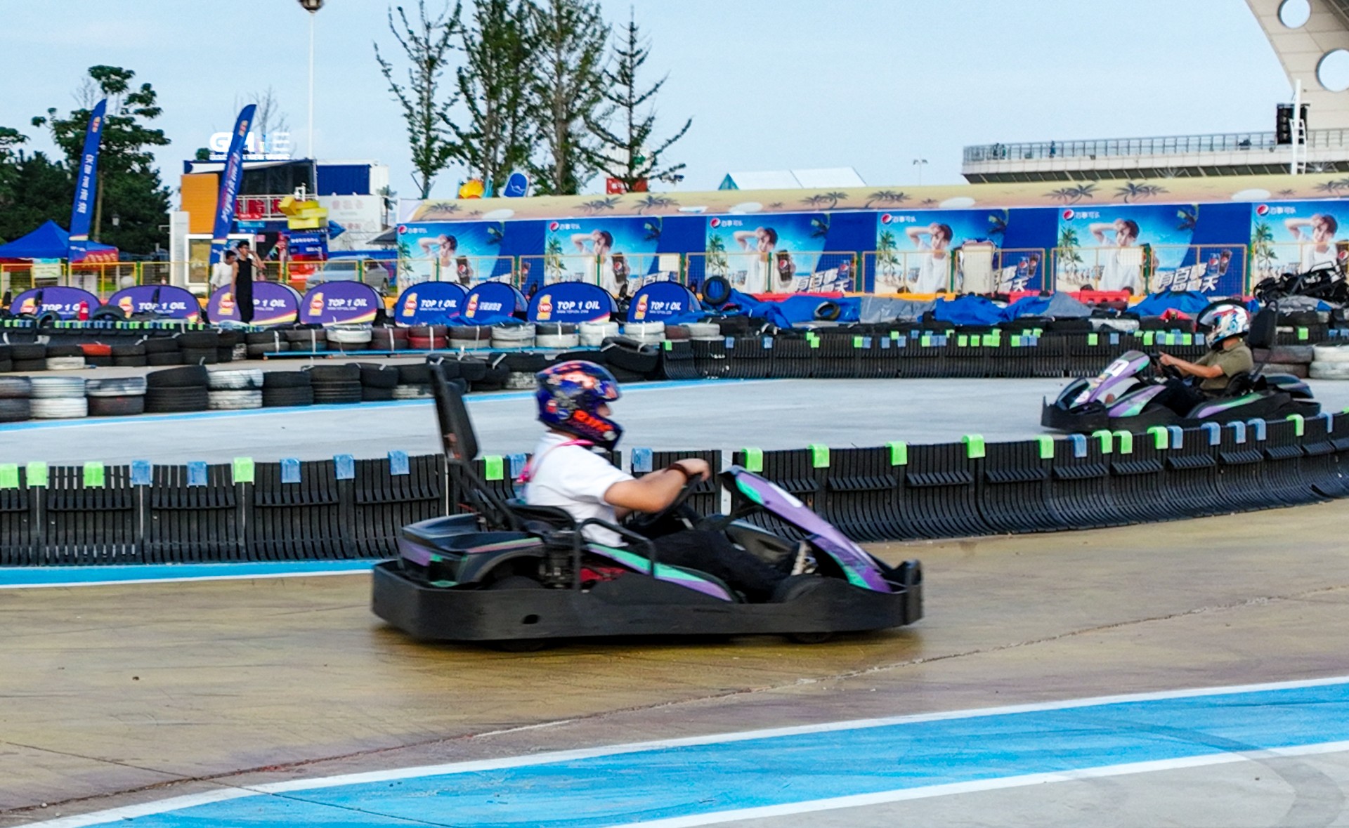 一辆帅气的卡丁车在眼前疾驰而过,车手在通过弯道时“点点刹车”便实现了“漂移过弯”,引得观众们一阵尖叫,这便是S1极速卡丁车俱乐部赛道里的精彩场景。“开着车追着风,踩着油门享受加速,爽!”结束一圈的比赛,车手们激动说道。