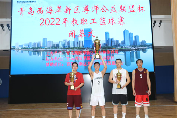近日,第十一届尊师公益联盟篮球赛闭幕式在青岛西海岸中铁世博城学校举行,来自西海岸新区的30支球队、近400名老师参加了今年的公益联盟篮球赛。经过多轮激烈角逐,宋永堃和张宗鑫所在的王台教办代表队斩获冠军,黄岛体校、区实验高级中学分别获得亚、季军,这场凝聚了体育和公益精神的篮球赛事在火热的八月划上了完美的句号。