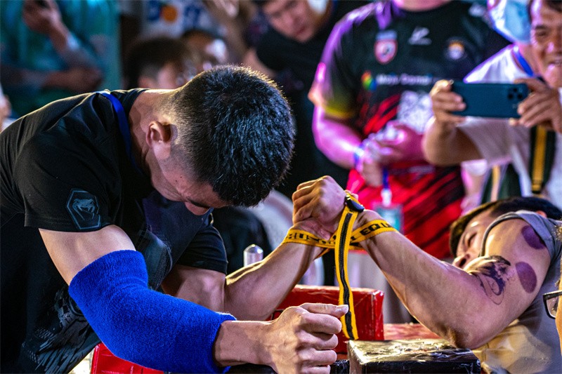 第三届HFS·时尚体育节斗腕公开赛8月9日在青岛西海岸金沙滩啤酒城火热开赛。比赛为期2天,来自全国10余个省、市、自治区的100余名顶级斗腕选手齐聚金沙滩啤酒城,为大家带来一场紧张而又刺激的斗腕比赛。