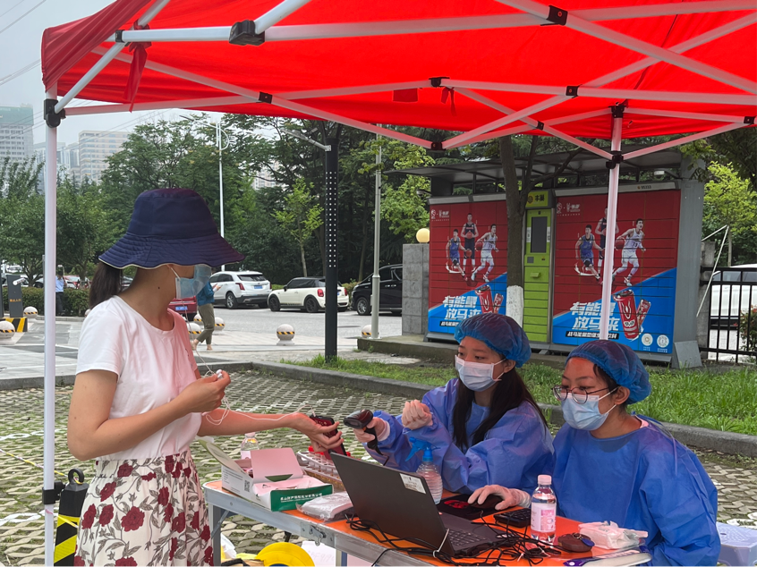 当前,国内本土疫情持续呈现多点局部爆发形势,为积极响应全民抗“疫”,聚力凝心、主动作为、加强防范,实践团在街道社区工作人员带领下,来到金家岭街道核酸检测点进行核酸检测志愿服务工作。
