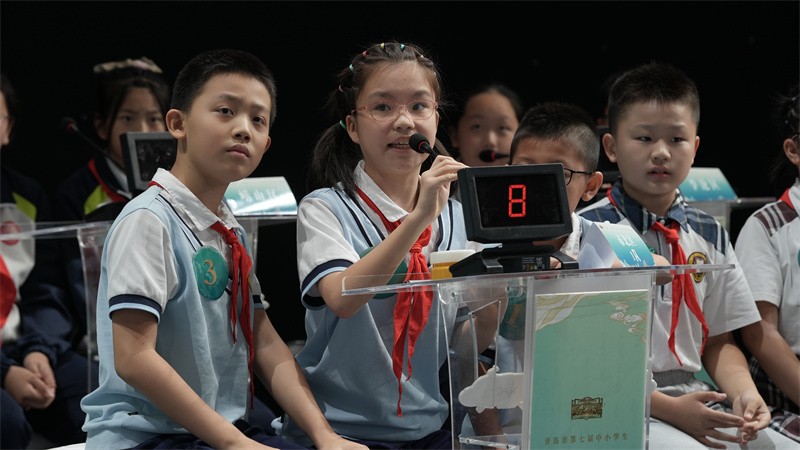 活动现场经典传颂,文采飞扬,小选手们神采奕奕。一道道国学知识考题串联起了中华千年文化脉络;一个个选手回答展现了新时代青少年们渊博广识的文化内涵。特别是在“诗词接龙”环节中,经典中华诗句“你来我往”、国学知识PK不分伯仲,充分展示了青岛市青少年深厚的国学文化知识素养与积极向上的精神风貌。