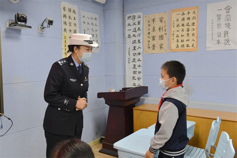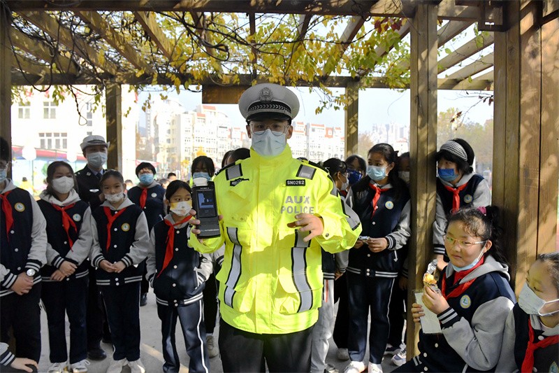 “一盔一带很重要,代表岛城的文明,斑马线前要礼让,交规要牢记”交警版《孤勇者》歌声在青岛福林小学六年级三班响起。这是11月25日上午“文明守法,平安回家”交通安全宣传活动的现场,青岛交警市南大队走进校园,为孩子们讲解交通安全知识。