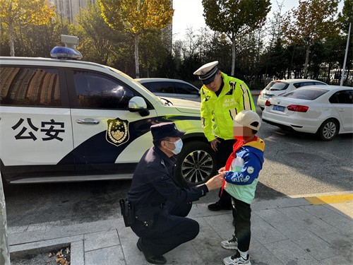 此时恰逢早高峰,执勤交警便联系当地派出所,待110民警到达现场交接完毕后,继续开展交通疏导工作。据悉,男孩在民警的帮助下,找到了家长并已送到学校上学。