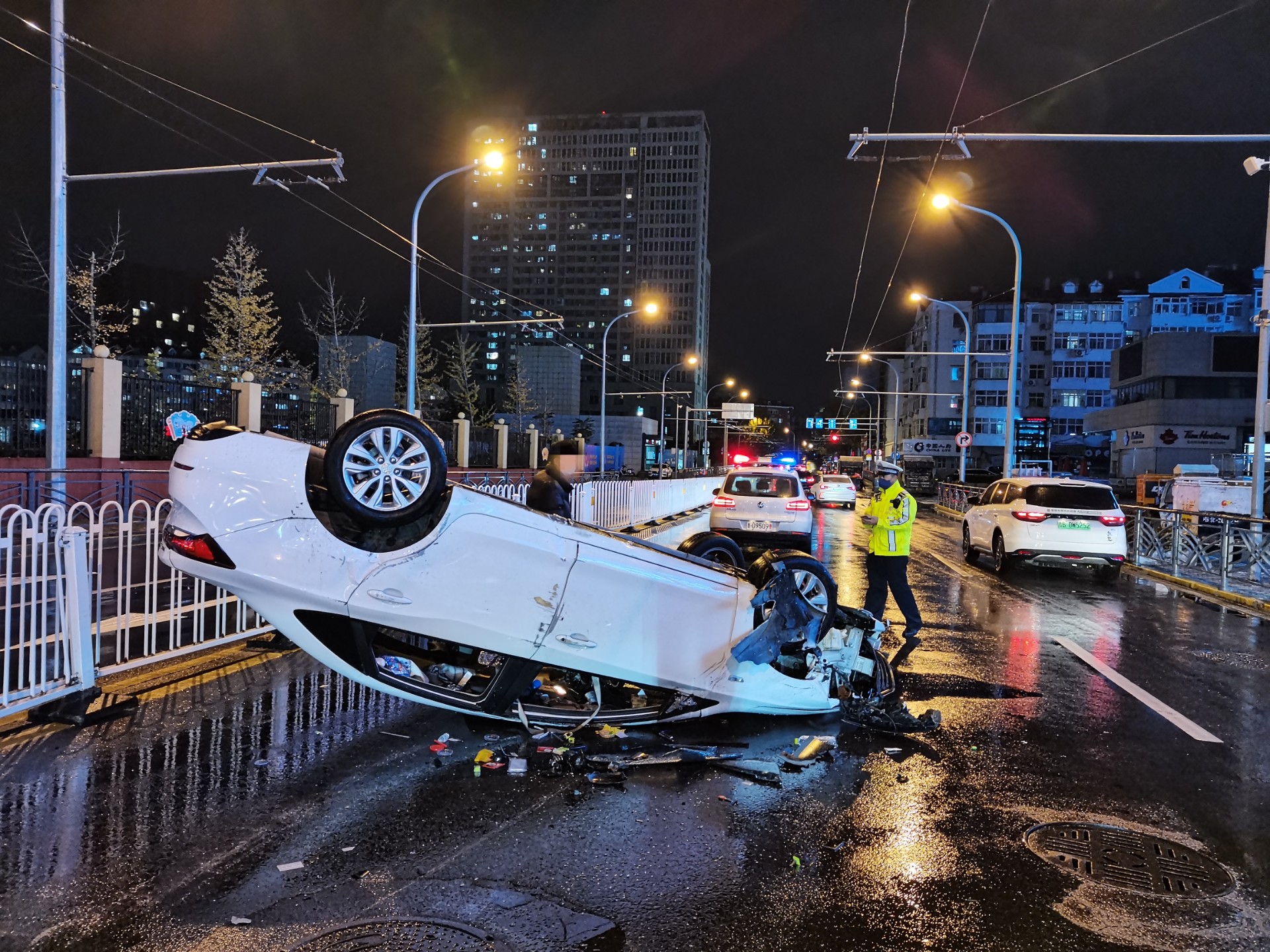 11月6日晚,青岛台东一路发生一起交通事故。由于驾驶员分心驾驶,车辆碰撞护栏,车辆直接倒翻,所幸车上人员系了安全带无人受伤。