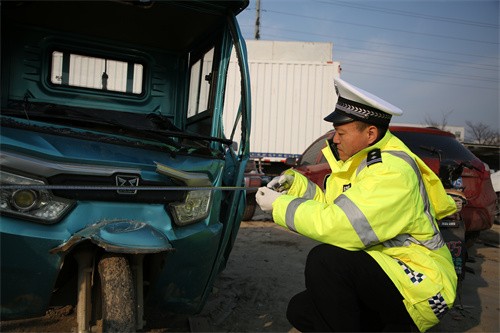 9月27日19时许,青岛平度市公安局交警大队事故一科接到报警称在平度市蓼兰镇何家店社区,一辆三轮车将一名正在散步的老人撞伤,伤者已经昏迷,三轮车向南逃逸。办案民警到达现场后看到地上有玻璃碎片,一同散步的两名目击证人称,三轮车跑到双柳树村后往西拐了。由于该路段正在修路没有监控,民警迅速赶到双柳树村查看监控,发现一辆可疑三轮车,前挡风玻璃有裂纹产生了漫反射,民警耐心地一帧一帧查看监控,发现该三轮车内拉了两个横截面为正方形的桶,像是搞建材用的。通过去建材市场走访,初步判断这是装万能胶水的桶,三轮车驾驶员和副驾驶的女性极有可能是从事装修工作的夫妻。结合电动三轮车行驶里程判断,该二人居住在现场南侧附近村庄的可能性较大,随后,民警对蓼兰、兰底、张戈庄、万家等十多个村庄逐个排查,了解该村从事装修工作的夫妻信息,最终确定姜某有重大嫌疑。10月3日,办案民警在曲坊村将姜某抓获,并在其家中院子发现肇事车辆。11月23日,当事人家属赵先生特地赶到交警大队,为办案民警送上了锦旗表达感谢。