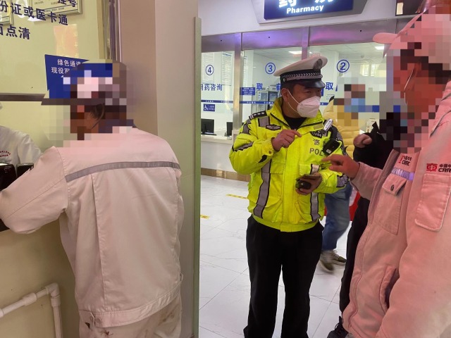 火车北站中队副中队长叶龙接警后,迅速与求助人取得联系,并立即带领辅警李怀龙,驾驶警车在环湾路太原路下桥口提前等候。9点17分成功与求助者车辆汇合,随后叶龙开启警车警灯、拉响警笛,带领求助车辆向医院方向一路疾驰。早高峰期间车流量较大,为争取时间保障沿线道路畅通,叶龙与支队沟通开启“绿波”通行,为伤者开辟“绿色生命通道”,最终于9点37分将求助者车辆安全护送到医院,原本40多分钟的路程用时仅20分钟,为伤者救治工作赢得了宝贵的抢救时间。