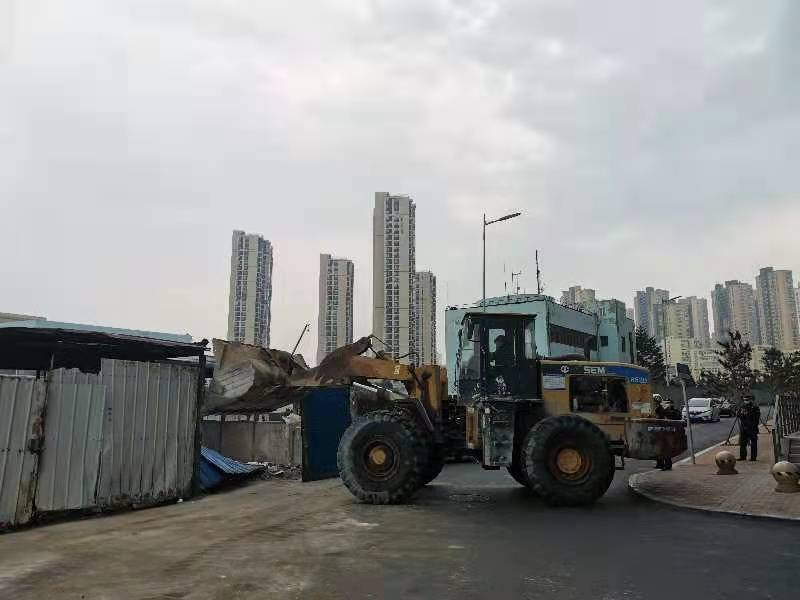 悦海地小区是中岛组团回迁小区,有4户居民在装修时,擅自搭建阳光房,既破坏了小区整体美观,又存在安全隐患,执法人员有理有据与居民沟通,坚持“零容忍”态度,重拳出击予以全部拆除;亚东路金茂湾购物中心和轮渡之间有一处用铁皮搭建的棚厦,面积169平方米,长时间废弃成为垃圾“安乐窝”,街道执法人员调来挖掘机和破碎锤,强力拆除,清理干净,为减少拆违造成扬尘污染,施工人员不断洒水,清理地面,确保文明施工。