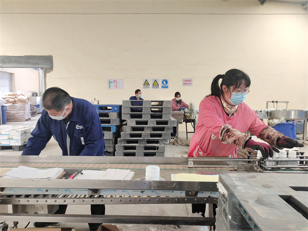 (图注:青岛海纳生物科技有限公司工人赶订单)