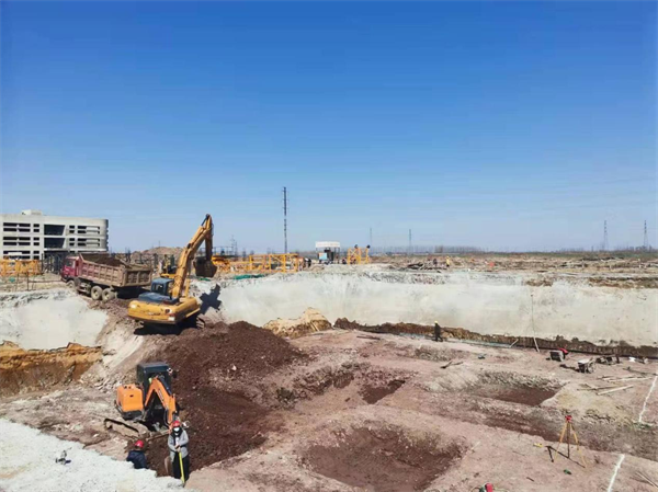 (图注:莱西市姜山生物医药产业园复工复产,13号楼座基础施工中。)