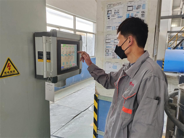 (图注:青岛中宝塑业有限公司复工复产,员工运用科技手段实施操作。)