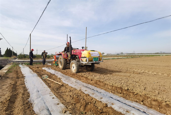 在莱西市店埠镇,测绘人员正在丈量土地。莱西市城投集团工作人员介绍:“这一片土地大约1200亩,我们将一次性流转,采用土地集中流转—整理—再流转模式,实现土地规模化经营,产业化发展。”