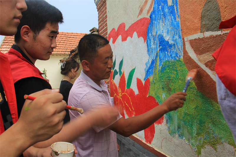 在青岛市莱西市河崖村,原本白色的墙面变得五彩斑斓,“永远跟党走”的大字耀眼夺目,“美丽乡村”生机勃勃。在青年志愿者的尽情挥洒下,一幅幅作品跃然墙上,让朴实素净的外墙生动鲜活,让红色乡村的风貌焕然一新,吸引了大批村民围观。“画得真不错啊!”村民纷纷称赞。青年志愿者们还邀请村民共同体验墙绘涂鸦,并与群众交流讨论美丽乡村、生态乡村的理念。