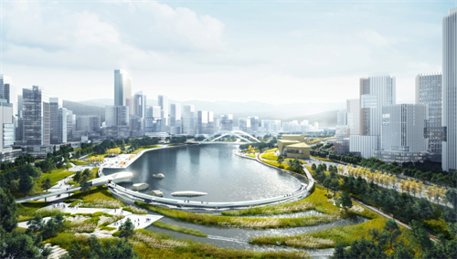 生态公园城:打造“一河串城、绿廊交织、群山相拥、公园点缀”的公园城市。重点打造张村河景观示范工程,以张村河为轴带营造具有全国示范作用的低碳、多自然弹性河道景观,集“互动、体验、交流、运动”等功能于一体,塑造崂山区最具魅力的活力休闲水岸、城市客厅。蓄水段积蓄水量形成中央水面,打造世界级城市中央滨水空间,非蓄水段以浅滩湿地、滨水草甸塑造休闲生态河岸,实现城景交融,创造有活力的城市标识性景观。