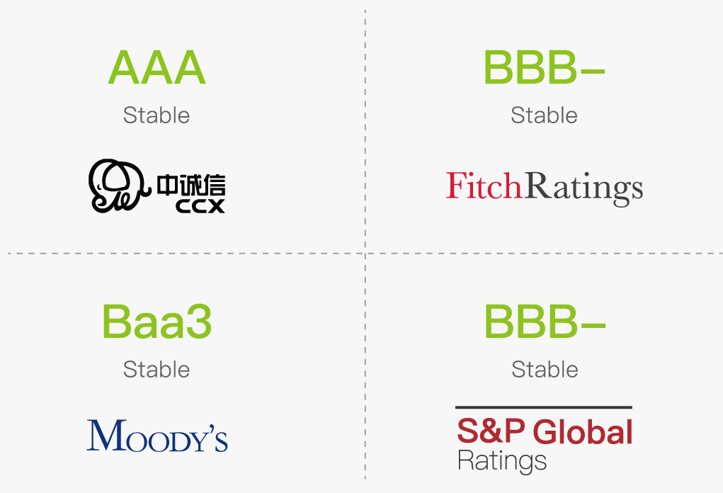 审慎安全的财务管理能力,让中国金茂获得众多权威评级机构认可:2022年国际三大评级机构全部维持“全投资”评级认定。其中,作为目前最主流、影响力也最大的国际评级机构之一,标普将评级由“展望”上调至“稳定”,也让中国金茂成为2022年唯一一家被标普给予评级上调的中国房企。