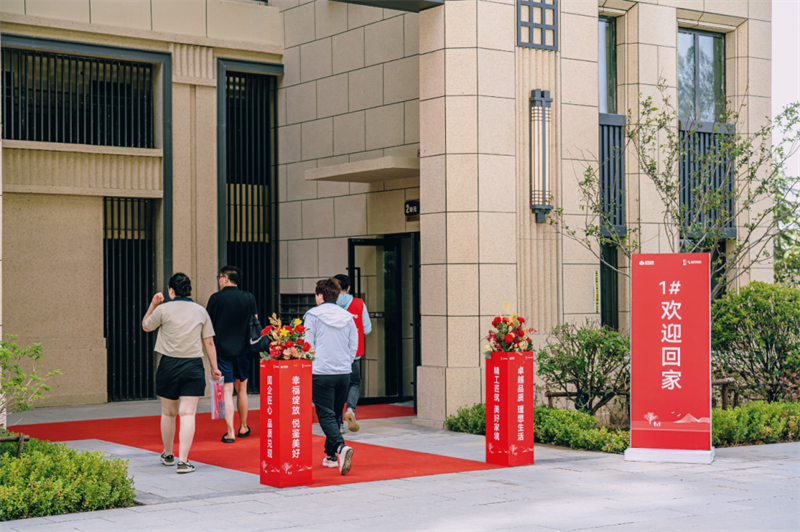 地毯蔓延至家的方向,沿途的装饰精致而又温馨,鲜明的花卉、喜庆的中国结、肃穆的敬礼、温暖的笑脸……,工作人员精心布置交付现场,处处弥漫的喜气温馨的氛围。加上现场恭候已久的验房师,无不体现着对绿地业主的至高尊崇礼遇。