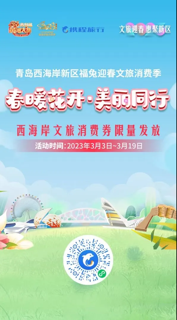 为了满足市民游客的消费需求,青岛西海岸新区将于3月3日16:00发放2023青岛西海岸福兔迎春消费季第三批文旅消费券,共计50万元,涵盖景区、酒店等文旅消费场景。消费券如何领,怎么用?你想知道的都在下面。