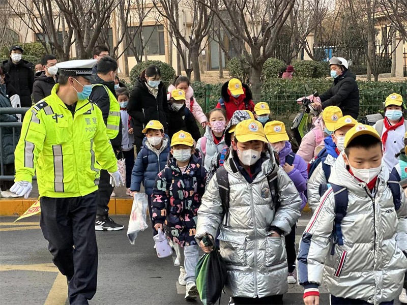 2月6日,岛城学子迎来开学第一天。青岛交警李沧大队提前增派警力,到辖区各个学校周边疏导交通,护导孩子上学;走进校园,给孩子送上生动活泼的交通安全课。