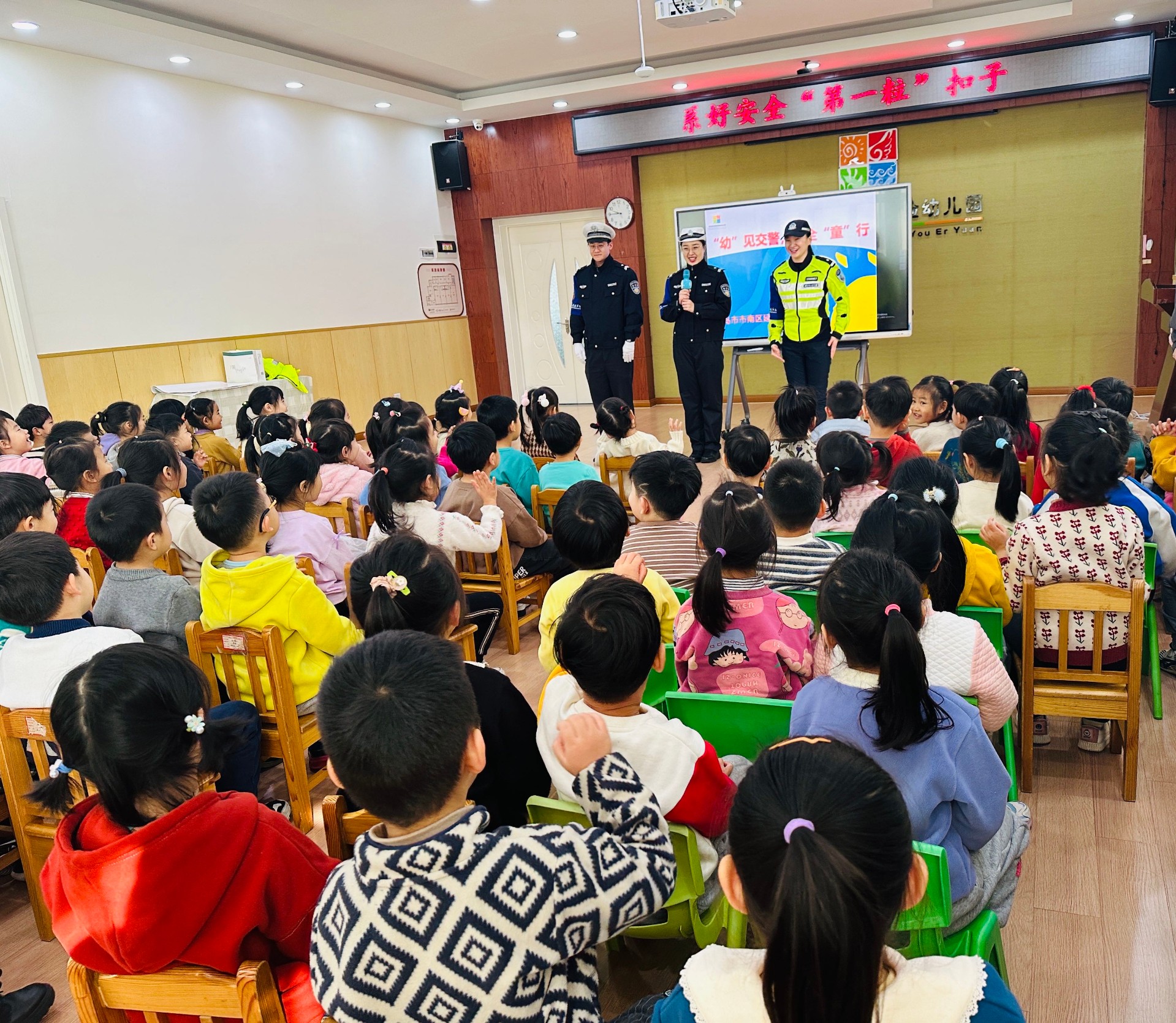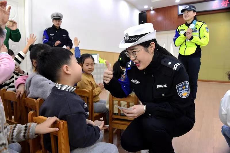 为增强教师和幼儿的交通安全意识,掌握交通安全知识,做文明交通参与者,2月16日,交警市南大队宣传科联合巡逻中队走进延福花园幼儿园开展“点对点”精准滴灌式交通安全知识讲解。