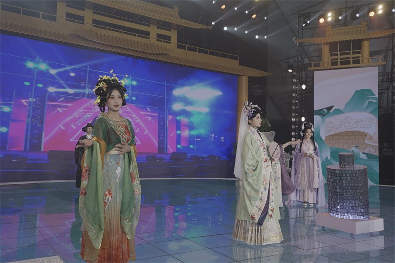 罗衣飘飘,万古风流。身着华美汉服的演员随着悠扬的古风旋律,带来一场汇聚中国染织绣等杰出工艺和美学的大型汉服走秀,彰显出中华泱泱五千年的文化与传承,将开幕式推上了高潮,引起现场观众阵阵喝彩。