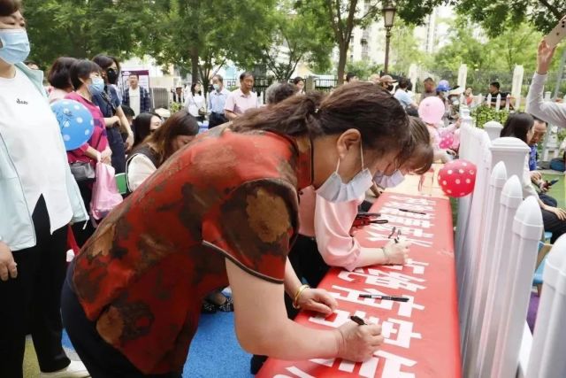 活动伊始,家长和小朋友们在倡导“绿书签”专项行动横幅上签到,大家一笔一划写下自己的名字,并在“绿书签打卡框”中拍照留念,承诺将以实际行动拒绝盗版和不良书籍,做到绿色阅读、文明上网。