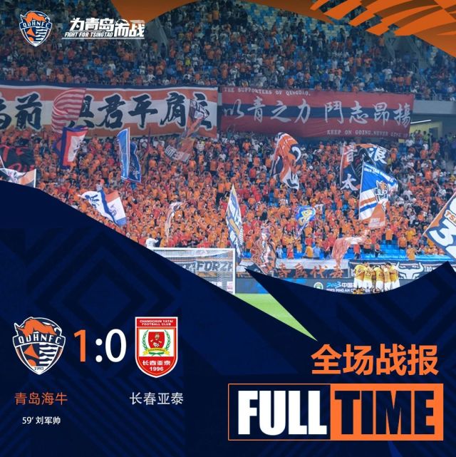 8月26日,中国平安中超联赛第24轮,依靠刘军帅的进球,青岛海牛主场1:0战胜长春亚泰。胜利属于每一个青岛海牛球迷!