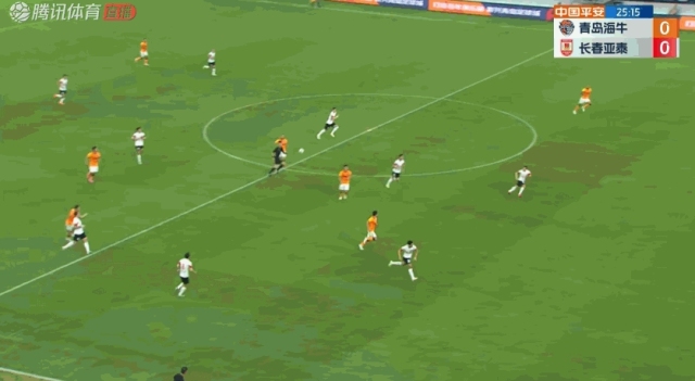 25分钟,青岛海牛打出反击,冯劲长传找到福布斯,福布斯拿球后形成单刀,射门被对手门将扑出,跟进补射的张卫在对手的干扰下踢偏。
