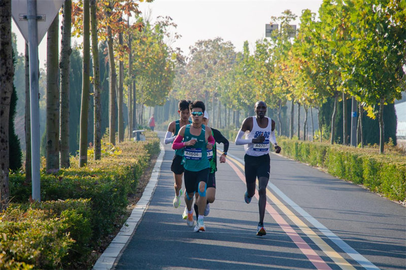 伴随着发令枪响,半马跑者们从莱西市委党校出发,在美丽的莱西湖畔驰骋竞速,途径大沽河、莱西湖等自然景观和产芝新村等文化景观,灵秀山水与现代化的城市建筑、生活街道融为一体,展示了一幅现代化绿色生态、幸福宜居城市的完美画卷。