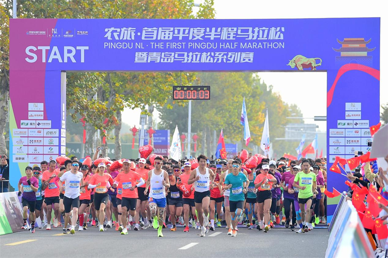 10月29日上午8点30分,由平度市人民政府主办,平度市教育和体育局、平度市农旅开发建设集团有限公司承办,青岛青马爱跑体育文化有限公司运营的农旅·首届平度半程马拉松在平度市民服务中心正门口鸣枪起跑。此次马拉松是青岛马拉松系列赛之一,聚集了来自全国各地5000余名马拉松爱好者,他们奔跑在平度壮美山水之间,用脚步感受美好,尽享马拉松运动带来的激情和快乐。此次马拉松也将谱写出“产业兴旺、体旅融合”崭新篇章,描绘出“富民乐业、诗意栖居”斑斓画卷。