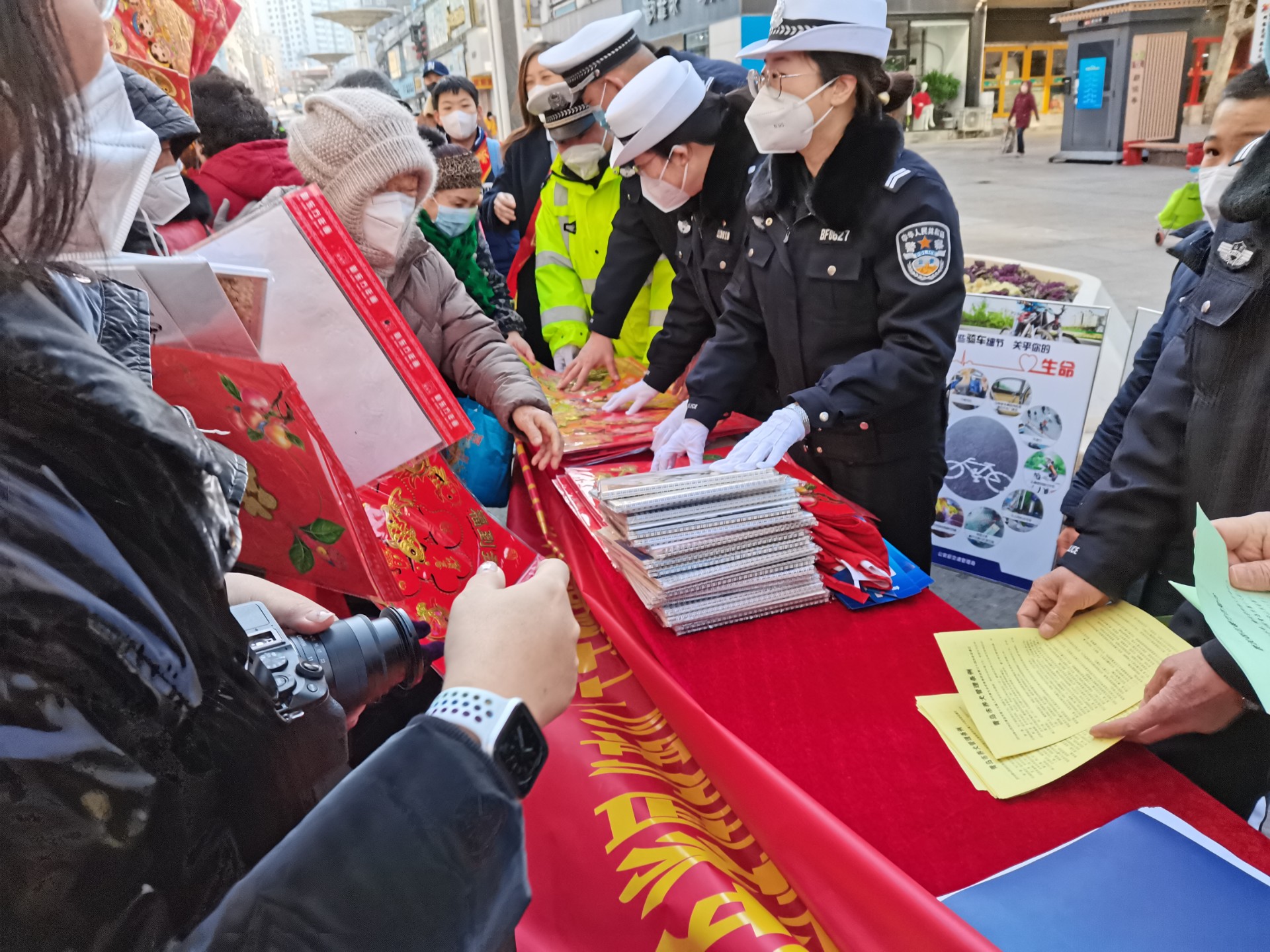 1月10日是“中国人民警察节”,青岛市市北交警在台东步行街举办“致敬人民警察节,矢志不渝做党和人民的忠诚卫士,为维护国家安全和社会稳定再立新功”主题宣传活动,市北交警宣传科携手威海路中队、市北分局台东派出所、中国银行青岛分行台东三路支行、青岛第五十三中学小学部学生积极参与,以此庆祝第三个“中国人民警察节”的到来。