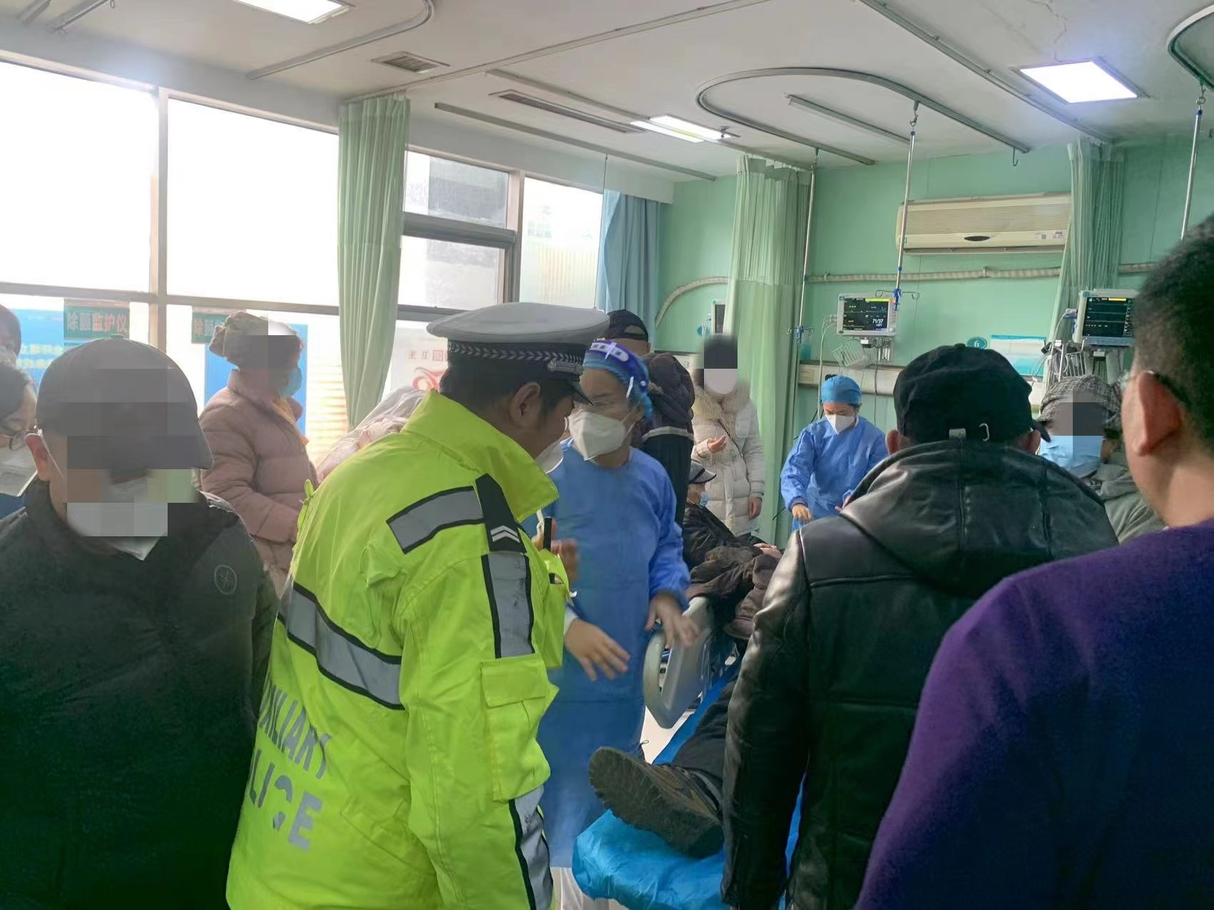 昏迷老人得到及时医治,其家属向交警连声道谢。